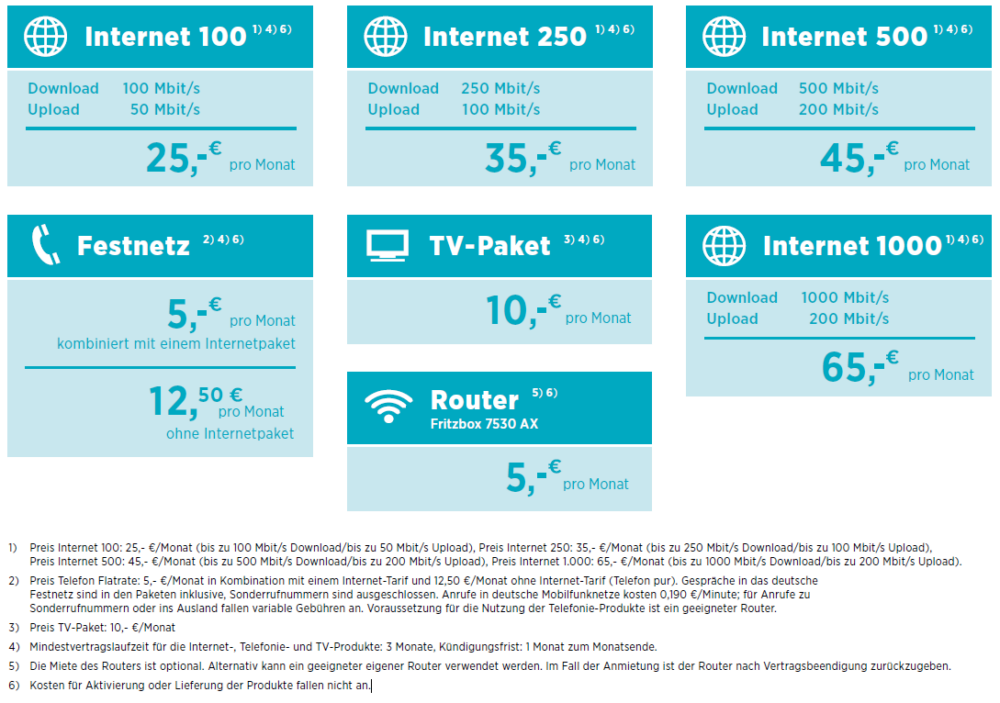 Sie können ab der Unterzeichnung des Mietvertrags Informationen sowie die Vertragsunterlagen unter bestellung@marienfeld-multimedia.de oder über unser Kundentelefon 0209 35975-990 anfordern. Mehr Infos zu den verschiedenen Angeboten finden Sie untenstehend.